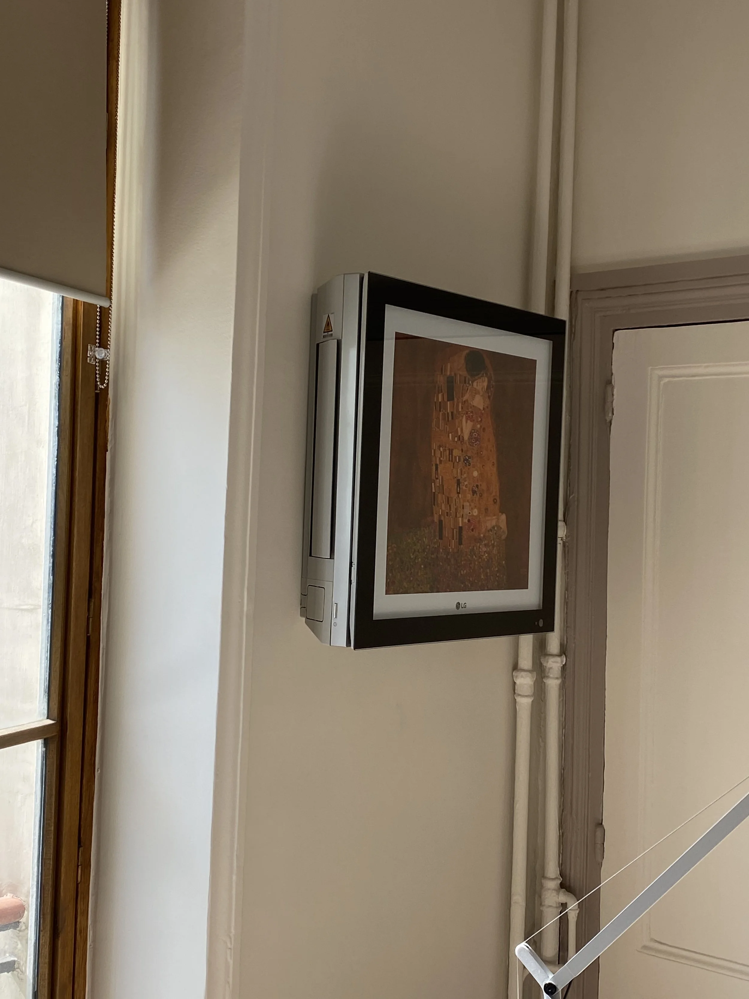 Découvrez la climatisation LG Artcool Gallery, l'alliance parfaite entre art et technologie ! Transformez votre climatiseur en véritable œuvre d'art grâce à ses façades personnalisables reproduisant des tableaux de maîtres ou vos propres créations. Cette climatisation réversible vous offre un confort optimal été comme hiver, avec une technologie Inverter ultra-silencieuse et économe en énergie. Son design élégant et ses performances énergétiques classe A+++ en font un choix esthétique et écologique pour votre intérieur. Profitez des aides CEE et de notre expertise RGE pour installer cette climatisation d'exception qui sublime votre décoration tout en maîtrisant vos factures énergétiques !